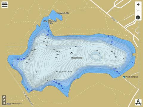 GPS Nautical Charts has a great app with depth maps for many major lakes and ponds in North America. Many state and local agencies also publish depth maps on their websites for fishing and boat navigation. A Google search for “[lake name] fishing map” will probably bring one up.